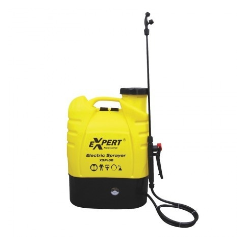 Akkumulátoros háti permetező XSP16B. Tartálytérfogat: 16 liter, membrános szivattyú, akkumulátor: 12V, 8Ah (ólomsavval feltöltött), egy töltéssel kb. 8-12 órát üzemel, hálózati töltő bemenet: 230V/50Hz, nyomás tartomány: 2-3 bar.