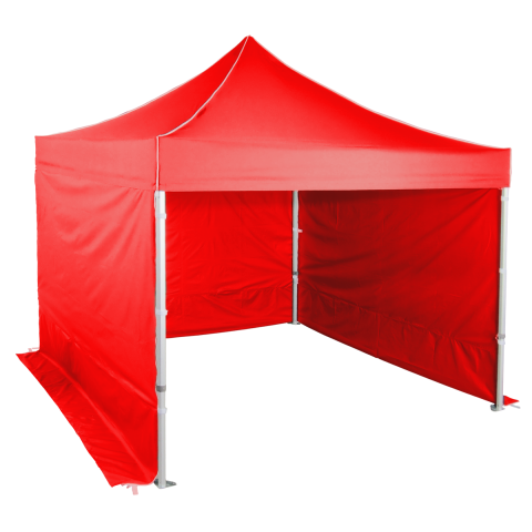 Zászlóshajó a gyorsan szétnyitható sátrak között. Az eloxált alumíniumszerkezet és a villámzárral összekapcsolható oldalfalak professzionális használatra készültek.