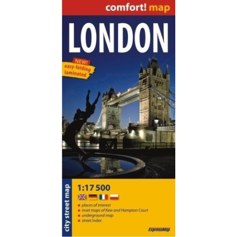 Comfort, laminált London térkép Az Expressmap Comfort térkép sorozat tagjai kétoldalas, laminált, könnyen kezelhető, praktikus, vízálló és strapabíró térképek. A laminált felületnek köszönhetően filctollal írhatóak, a jelölések később eltávolíthatók.