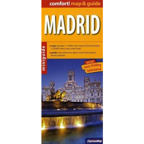 Comfort, laminált Madrid várostérkép 1:10e. Az Expressmap Comfort térkép sorozat tagjai kétoldalas, laminált, könnyen kezelhető, praktikus, vízálló és strapabíró térképek. A laminált felületnek köszönhetően filctollal írhatóak, a jelölések később eltá