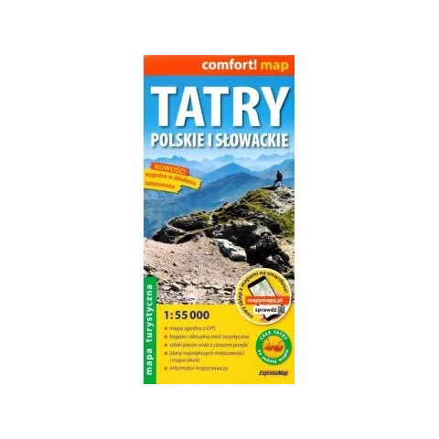 Tátra comfort laminált turistatérkép. Laminált borítású azaz víz és hajtogatás álló turistatérkép a Magas-Tátráról. Zakopane-tól Tátralomnicig a lengyel és a szlovák oldal egyaránt megtalálható a térképen. Az egész lengyel és szlovák Tátra egy térképen! A