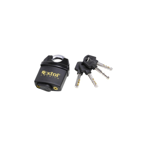 1 kép Extol Biztonsági lakat, levágás elleni védelemmel, festett, vízálló, 4db kulcs; 60mm