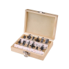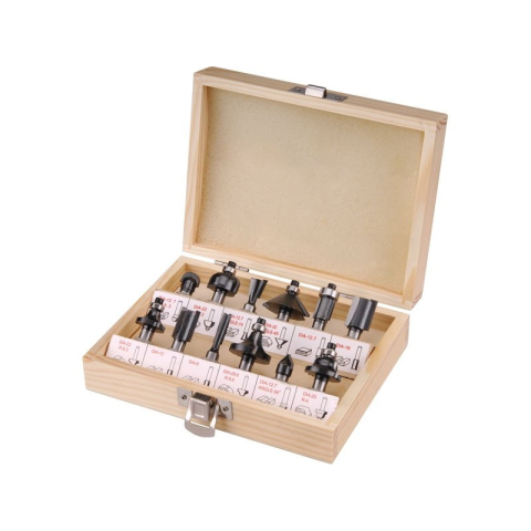 Az Extol Craft felsőmaró készlet 12 db-os fadobozban kerül kiszállításra. Befogásuk 8 mm-es. A felsőmaró készlet darabjai jó minőségű csapággyal, vezetőgörgővel, valamint keményfém lapás vágóéllel rendelkeznek.