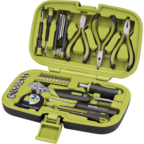 Szerszámkészlet -35 db, anyaga króm-vanádium, tartalma: mérőszalag, imbuszkulcs, fogók, csavarhúzók, műanyag táska Összeállítottunk számodra egy praktikus Extol Craft 6581 szerszámkészletet, amelyet igazán vonzó áron kínálunk. Minden ezermester értékelni fogja ezt a gazdag felszereltségű és jól csomagolt k