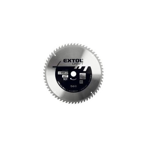 Extol Craft keményfémlapkás körfűrészlap 350 x 30 mm (19119). Fához, faalapú anyagok fűrészelésére használható. Edzett hidegen sajtolt acélból készült. A fűrészlap maximális fordulatszáma 4.300 ford/perc. T60, lapszélessége 3,5 mm.