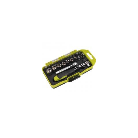 Az Extol Craft 23 darabos racsnis bit és dugókulcs készlet króm- vanádiumból készült. A készlet tartalma: 1/4" racsnis hajtókar 1/4" dugókulcsok: 4-5-6-7-8-9-10-12-13 mm 1/4" hosszabbító, 75 mm BIT-ek 1/4" x 25 mm: lapos (-) 5,6 mm, PH1, PH2, HEX H3-4-5-6 mm, TORX T15-20-25-30. A racsnis dugókulcs készlet praktikus műanyag kofferban tárolható, így rendszerezve és védve vannak a szerszámok.