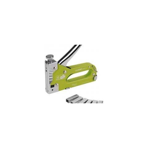 Az Extol Craft tűzőgép fémből készült. A tetején lévő csavar az ütés erejének szabályozására szolgál. A rögzítés erősségének és az anyag keménységének megfelelően állíthatja be. A tűzőgép 11,3 x 0,7 mm-es kapcsokkal használható.
