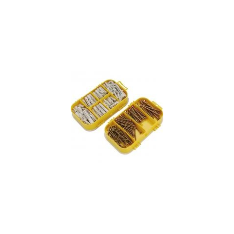 Az Extol 170 db-os forgácslapcsavar és műanyag tipli készlet tartalma :- csavarok : 40 db 3,5×30 25 db 4×40 12 db 5×50 8 db 6×60 - tiplik (PE) : 40 db S5 (5×25) 25 db S6 (6×30) 12 db S8 (8×40) 8 db S10 (10×50) A többrekeszes, műanyag tároló doboz használata, elősegíti a könnyebb szállítás