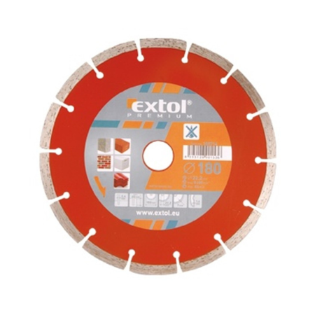 Extol PREMIUM szegmenses gyémánttárcsa 230 mm Száraz vágáshoz használható sarokcsiszolóval. Az Extol Premium gyémánt vágókorongok megbízható, általános felhasználású vágószerszámok. A korong alkalmas beton, tégla, cserép, téglafal, kő, gránit vágására.