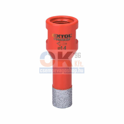 Extol gyémántfúró, körkivágó száraz fúráshoz. Alkalmas csempe, járólap, gres, kőporcelán, márvány és egyéb burkolóanyagok fúrására. Szárazon használható, sarokcsiszolóba fogható M14-es menettel rendelkezik. Extol gyémántfúró körkivágó 20 mm × M14 (e