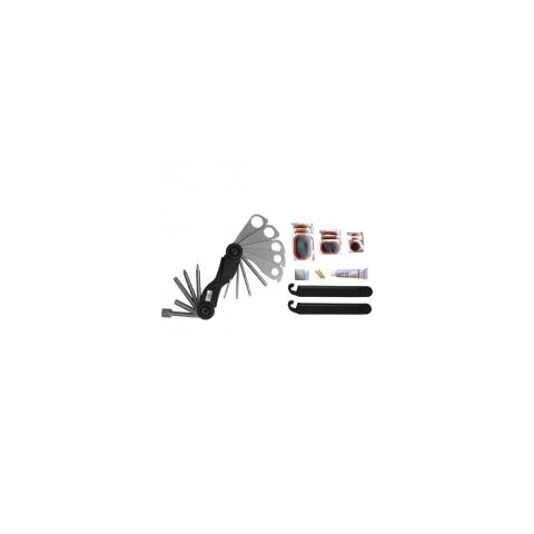 Az Extol Craft 30 darabos javítókészlet kerékpárhoz praktikus, övre fűzhető tartóban tárolható és szállítható. A javítókészlet tartalma a kulcskészlet, ragasztó, különböző javító foltok és gumiszerelő.