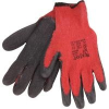 A kötött kesztyű, csúszásgátlós latexbe mártott, 9-es méretezésű. Pamut és poliészter anyagból, varratmentesen készült. A tenyere és ujjak csúszásgátlós latexbe mártottak, így könnyebben végezhető a munka. A rugalmasan kötött mandzsetta rész megakadályozza a lecsúszást. A kesztyű elsősorban a nedvesség (víz) ellen véd, de az olajok, zsírok ellen nem, így elsősorban kerti munkákhoz ideális. EN 420