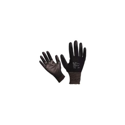A Kötött védőkesztyű, poliuretánba mártott tenyér résszel és ujjhegyekkel. A gumírozott rugalmas mandzsetta megakadályozza a lecsúszást. A kesztyű alkalmas olajjal szennyezett tárgyak, száraz és nedves alkatrészek kezelésére. Méret: 9, L.