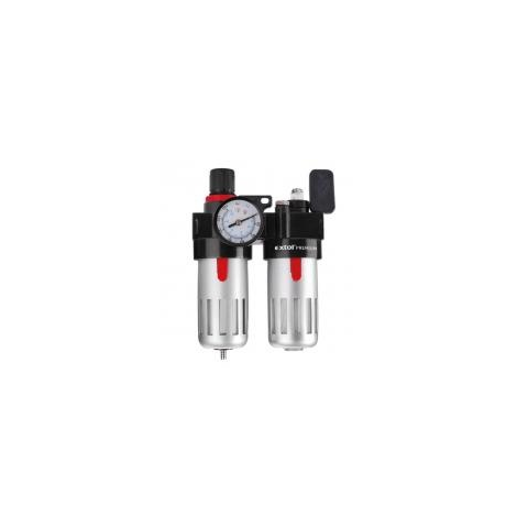 Extol Premium levegőelőkészítő 1/4"Az Extol tökéletes minőségű levegőelőkészítőjének segítségével szakszerűen, gyorsan és könnyedén állíthat elő sűrített levegőt. A levegőelőkészítő rendelkezik légszűrő nyomásszabályozóval, olajozóval és manométerrel is. Maximum 60 ℃-on és legfeljebb 8 bar nyomáson képes munkavégzésre, szűrője 90 milliliteres, olajozója szintén 90 milliliteres.