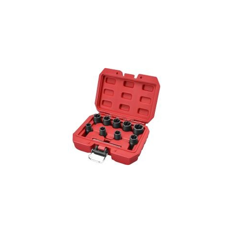 Az Extol Premium 9 db-os csavarkiszedő készlet (8818141), sérült, beragadt, lekerekített, korrodált, hatlapfejű csavarok és anyák meglazításához. Króm-molibdén fémötvözetből készült, 3/8" befogással. A készlet 9 db fejet tartalmaz: 10, 11, 12, 13, 14, 15, 16, 17, 19 mm + 1 db 8 mm* 75 mm O-keresztmetszetű kiütő rudat. Csak kézi használatra, gépi/impact meghajtásra alkalmatlan! A használatához szükség van egy 3/8" hajtókarra, ami nem része a készletnek! Aj
