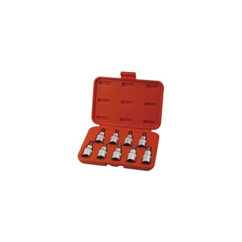 Az Extol Premium 9 db-os TORX bitdugófej készlet (8818124), profi felhasználásra készítették a gyorsasági, ergonómiai, gazdaságossági, pontossági követelményeknek megfelelően. Anyagminőség: Bit: S2, dugófej foglalat: C.V.A lyukas TORX bitdugófej készlet befogása 1/2", hossza 55 mm. Méretei: 20-25-27-30-40-45-50-55-60.