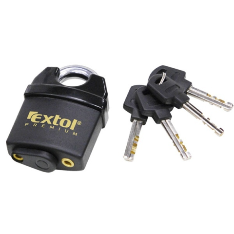 1 kép Extol Premium biztonsági lakat, levágás elleni védelemmel, festett, vízálló, 4db kulcs; 50mm (885775