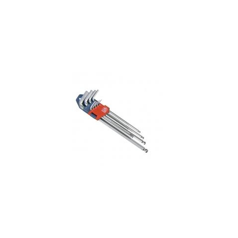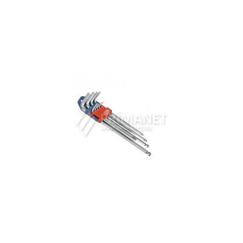 Extol Premium imbuszkulcskészlet 9 darabos, extra hosszú. L-alakúak, melyek elősegítik a maximális erőkihasználást. Kitűnő minőségű króm-vanádium acélból készültek. Végük gömbfejben végződik, mely ideális a 30°-os szögben végzett munkához, a hosszabb imbuszkulcs pedig első osztályú eszköz, a nehezen hozzáférhető helyeken. A méretük 1,5-10 mm-ig terjed, így az imbuszkulcskészletben megtalálható: 1,5 mm; 2,0 mm; 2,5 mm; 3,0 mm; 4,0 mm; 5,0