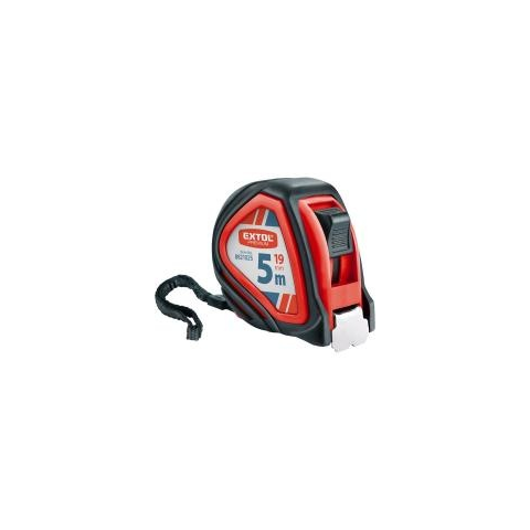Az Extol Prémium mérőszalag 1 stoppos kivitelben készült (8821025). Hossza 5 m, szélessége 19 mm. Az önfeltekercselő szerkezet erős rugóval ellátott. A STOP gomb segítségével a szalag megállítható és rögzíthető. Az Extol Prémium gumírozott mérőszalag minden szerszámos láda alapvető tartozéka.