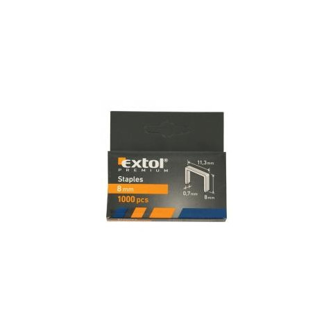 Az Extol Premium tűzőgépkapocs professzionális tűzőgépekhez alkalmazható. Magassága 8 mm, szélessége 11.3 mm. A csomagban 1000 db tűzőgépkapocs fej található. Így is ismerheti: tűzőgépszeg, tűzőgépkapocs.