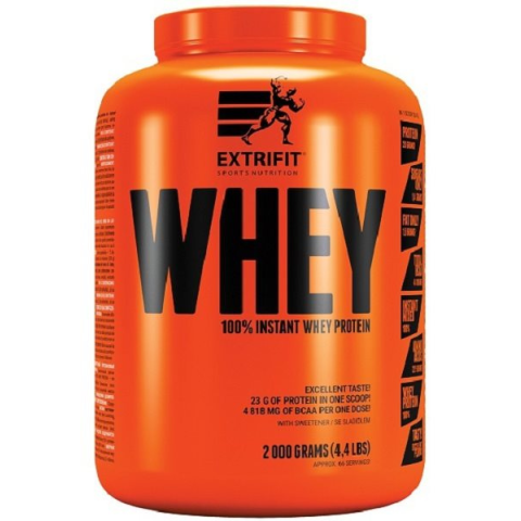 Protein - tejsavó, koncentrátum, 75 % fehérjetartalom, 66 adag, csokoládé ízű Extrifit 100% Whey Proteincsokoládé, 2 kgAz Extrifit 100% Whey Protein tiszta tejsavófehérje, amely kiváló emészthetőségével és gyors felszívódásával tűnik ki. Minden adag 23 gramm kiváló minőségű feh