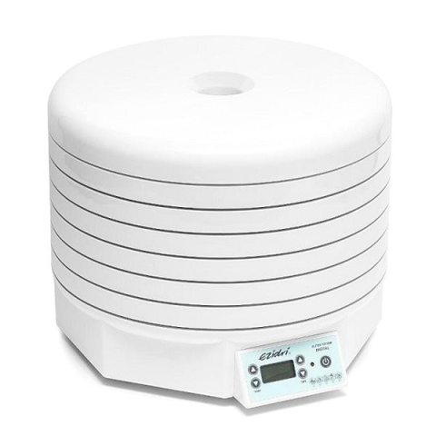 Aszalógép zöldség és gyümölcs szárításához - 1000 W teljesítmény segítségével szárítható gomba, fűszernövények, tea, 5 szárítólemez, szárítólemez átmérője 38,6 cm, digitális vezérlés, automatikus kikapcsolás, időzítő, hőmérséklet szabályozás 35 - 70 °C, kijelző, érintésvezérlés, függőleges légáramlás, műanyag szárítólemezek, aszalógép anyaga műanyag, mérete 20 × 38,6 × 38,6 cm (Ma×Sz×Mé) Manapság nagyon népszerű módszerré v
