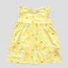 Citromsárga, méhecskés ruha Kissé bővülő szabású, kerek nyakú, háta egy gombbal záródik. Kellemes pamut anyag. Hibátlan állapotú.