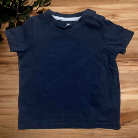 Sötétkék pamut felső Egyenes szabású, kerek nyakkivágású, vállán patentos. Hibátlan állapotú.