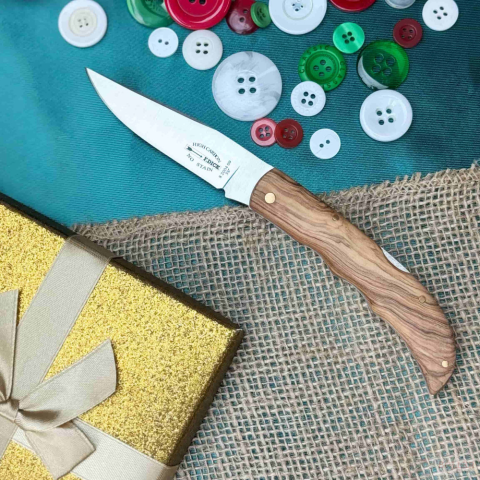 Vadászok és túrázók nagy kedvence ez a bicska, melynek exkluzív, különleges kialakítású nyele nemcsak szép, de kitűnő fogást is nyújt. A zsebkés nyelét valódi olajfából készítették, ezért erezete mindegyiknek más és más. A 9 centiméteres penge ellenáll