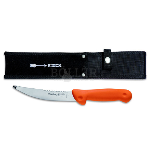 Különleges, egyedi kialakítású kés, mely elsősorban vadászok számára ajánlott. A német Dick minőségi késeinek tipikus darabja, jó fogású, szép kialakítású és jól használható. Különleges kialakítású, tompított hegye garantálja a biztonságos és tiszta vágá