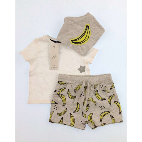 F&F F&F kisfiú banánmintás fehér-szürke szett - 80