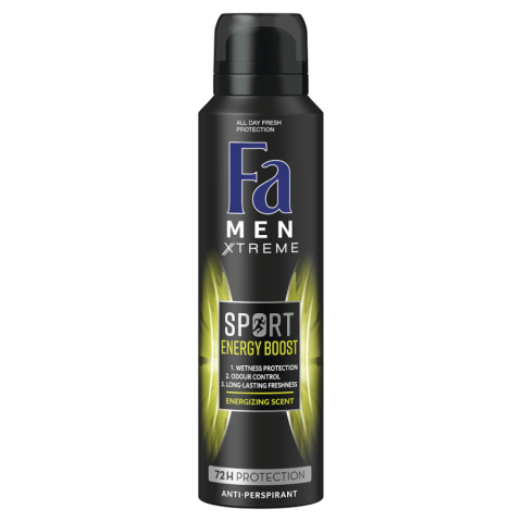 Fa Men Xtreme Sport Energy Boost izzadásgátló deospray gyömbér és citrom illattal. A hatékony izzadásgátló formula hosszantartó frissességet nyújt, izzadság és testszag elleni védelemmel.