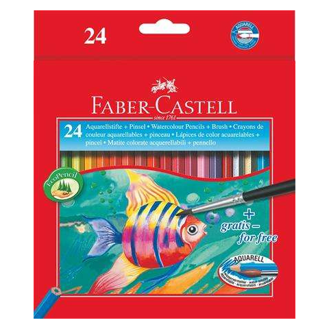 Faber-Castell Akvarell ceruza készlet, hatszögletű, ecsettel, FABER-CASTELL, 24 különböző szín