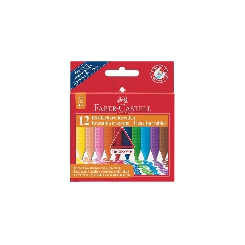Zsírkréta, háromszögletű, FABER-CASTELL "Grip", 12 különböző szín