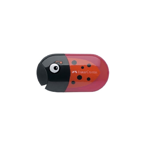 Hegyező és radír, kétlyukú, tartályos, FABER-CASTELL, katicabogár minta