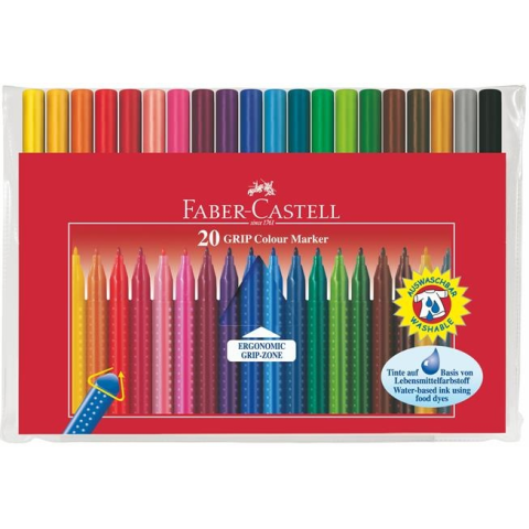 Faber-Castell Filctoll készlet, háromszögletű, FABER-CASTELL Grip , 20 különböző szín filctoll, marker termékleírás