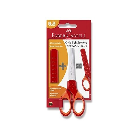 Gyerekolló - lekerekített heggyel, jobb-és balkezes, ergonomikus műanyag markolat, rozsdamentes acél penge A Faber-Castell Grip olló ideális az iskoláskorú gyermekek számára. A kényelmes használat érdekében ergonomikusan kialakított, puha markolatú felületük van. A nagyobb biztonság érdekében kerek heggyel
