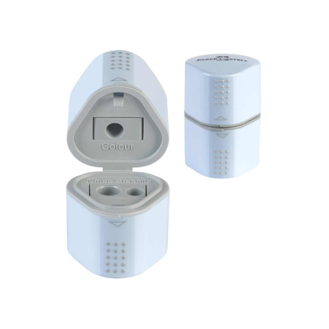 Ismerkedj meg a Faber-Castell Grip 2001 Trió hegyezővel, amely praktikus és stílusos kiegészítője lesz gyermeked íróeszközeinek. Ez az égszínkék színű hegyező három különböző méretű nyílással rendelkezik: egy a standard méretű ceruzákhoz, egy a vékonyabb grafitceruzákhoz és egy a vastagabb, jumbo méretűekhez. A hegyező tetején található "Grip" zóna