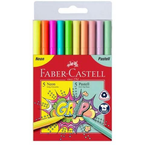 Faber-Castell: Grip neon és pasztell filctoll szett 5+5db-os