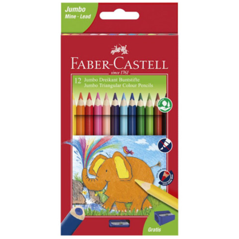 Faber-Castell: Jumbo 12db-os háromszögletű színes ceruza szett hegyezővel