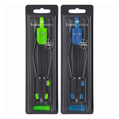 Körző FABER-CASTELL állítható szárral iskolai és középiskolai Iskolai körző, állítható szárral. Tartalék tűvel és grafit heggyel. Három féle színben. Legnagyobb rajzolható átmérő: 440mm.