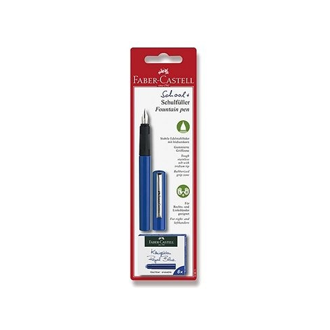 Töltőtoll - kitörölhető tinta, kék színű, cserélhető töltet, rendeltetése jobbkezeseknek és balkezeseknek, 1 darab a csomagban, anyaga műanyag, vonalvastagság 0,5 mm, felpattintható kupakkal Faber-Castell patronos, kék + 6 patron legfőbb paraméterei Ezen Faber-Castell töltőtoll még a legigényesebbek követelményeit is kielégíti A kupak megóvja a hegyet és meggátolja a tinta kiszáradását Re