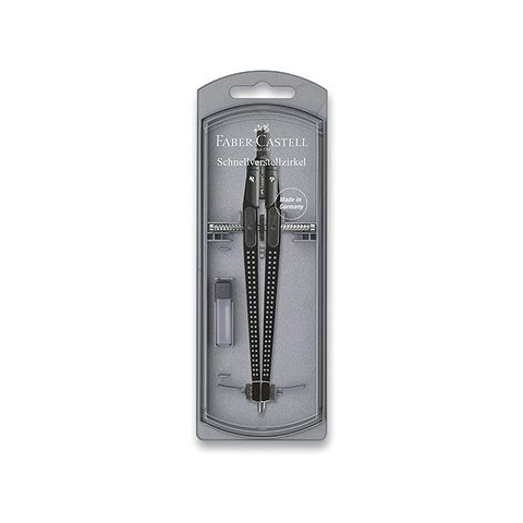 Körző - fém kivitel, 390 mm-es maximális körátmérő, fekete színű, körzőhegy, tok és pótalkatrész a csomag része Ennek a körzőnek a robusztus rendszere gyors és precíz sugárbeállítást tesz lehetővé. A Faber-Castell Grip Quick-Set 2001 körző akár 390 mm átmérőjű körök rajzolására is alkalmas. A minőségi, GRI