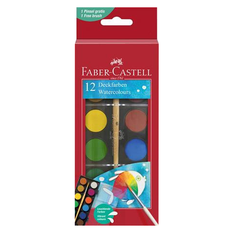 Vízfesték készlet 12 db-os 24 mm-es korongokkal -ragyogó színek a tökéletes festési élményhez -ideális minden festési és keverési eljáráshoz -korlátlan számú árnyalat a színek keverésével -jó fedési eredmény papíron és sok más felületen -ideális használat iskolába és szabadidős tevékenységre -a doboz tartalmaz 1db ecsetet is Itt megtekinthető és letölthető a biztonsági adatlap. Gyártó/első EU forgalmazó elérhetősége: A.W. Faber-Castell Vertrie