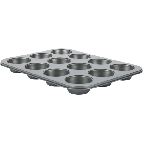 Szürke Fackelmann muffinforma tapadásmentes felülettel 12 muffin számára. A forma méretei: hosszúság 345 mm, szélesség 260 mm, magasság 30 mm. Egy muffin méretei: magasság 30 mm, átmérő 70 mm. Fémből készült, ideális ízletes házi muffinok sütéséhez.