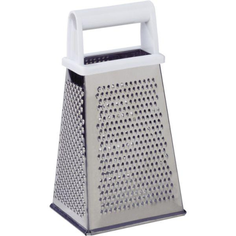 Rozsdamentes, négyoldalú Fackelmann reszelő, 21,5 cm magas, négyféle reszelőfelülettel és műanyag nyéllel. Minden konyhába alkalmas az egyszerű és gyors sajt-, zöldség- és egyéb élelmiszerek reszeléséhez.