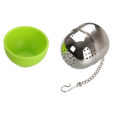 A tartóban elhelyezett Fackelmann teatojás tökéletes teaélményt biztosít, amely ízsemleges, kiváló minőségű rozsdamentes acélból készült, és amelynek tartója a teatojás számára biztosít helyet. Anyag: tojás: nemesacél, tartó: SAN. Méretek: Tojás: 40 mm x 45 mm, tálca: 40 mm x 25 mm.