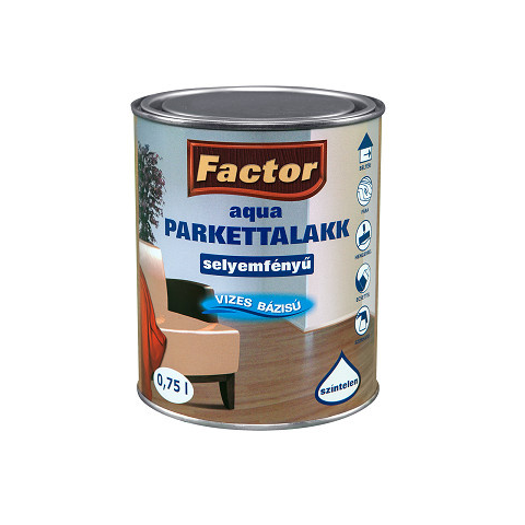 Alkalmazás: A FACTOR Aqua Parkettalakk polyuretan és akrilgyanta bázisú, beltéri felhasználásra ajánlott lakk. Oldószer- és formaldehidmentes, szagtalan, vízzel hígítható. Egykomponensű, könnyen felhordható, gyorsan szárad, ezért a lakkozott felület hamar