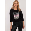 Blúz Factory Price MM-203783. Színe: Fekete Mindennapos, laza stílusú blúz, tökéletes mindennapos szett kiegészítője. Kellemes tapintású pamutból készült, elasztánnal kiegészítve, biztosítja a kényelmet és a finom rugalmasságot, ideális az aktív napokra. A standard hosszúságú, 3/4-es ujjú blúz minden évszakban praktikus választás. Az elől található stílusos nyomtatás egyedi karaktert és divatos hangulatot kölcsönöz