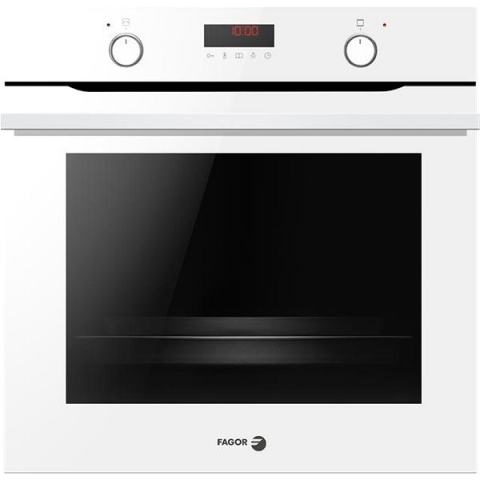 Fagor elektromos multifunkciós sütő gőzfunkcióval, 59,5 cm szélességgel, 59,5 cm magassággal és 57,5 cm mélységgel. A készülék fehér színű, teleszkópos hosszabbítókkal van felszerelve, energiaosztálya A+.